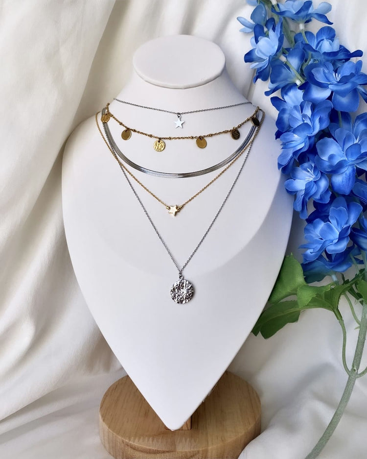 Des colliers en acier inoxydable, du doré, de l’argenté, des médailles, des ras de cou, de la couleur, des créations de caractères ou bien délicates… vous y trouverez forcément votre bonheur.