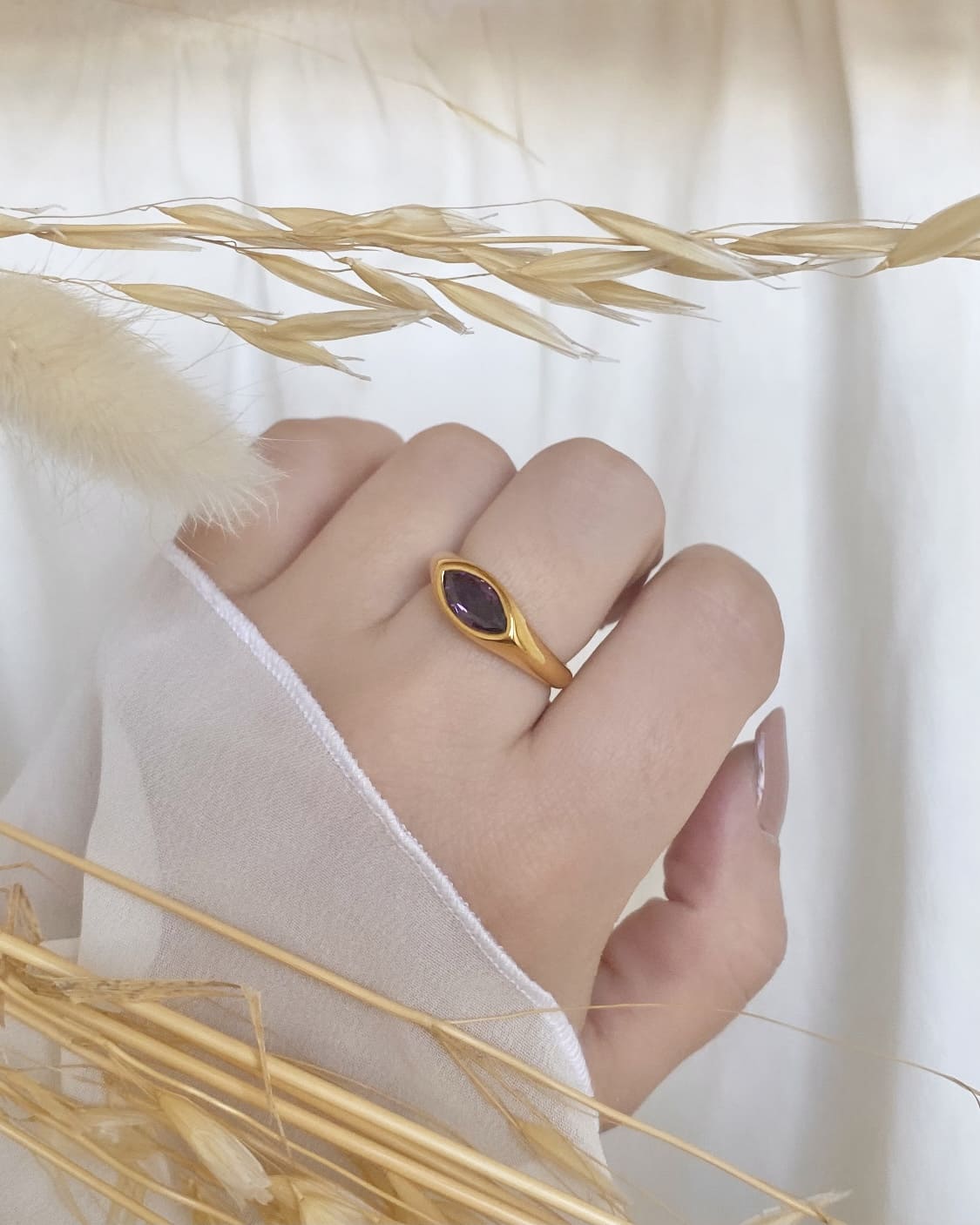 Une belle bague avec juste un zircon violet. Cette bague en acier inoxydable est l'élégance en couleur.